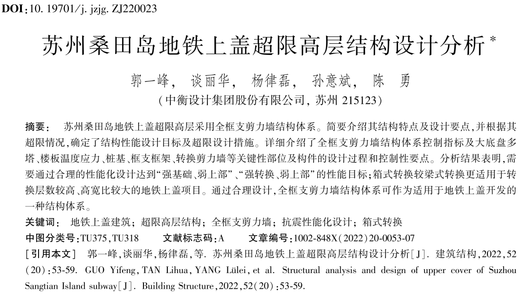 學(xué)術(shù)科研丨《建筑結構》中衡設計集團專(zhuān)輯刊發(fā)